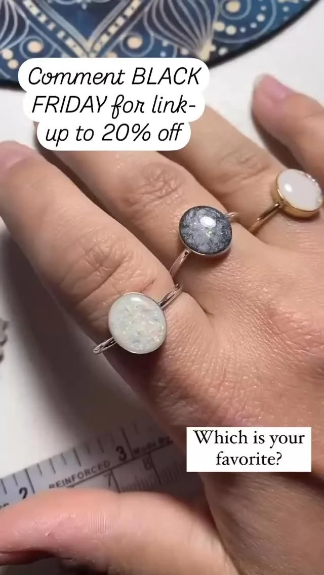 “I ordered the breastmilk ring during Black Friday and sent in the milk after a few days; I received the ring in about 8 weeks! I waited to open it until my birthday and it is AMAZING quality! I love it and I love looking at it as a reminder of my sweet rainbow baby.” —Raj
